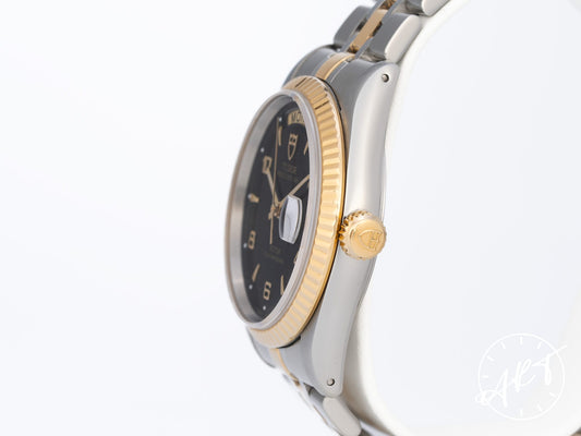 Tudor Prince Day-Date Black Dial Two-Tone 18K Gold & SS Watch 76213 BP