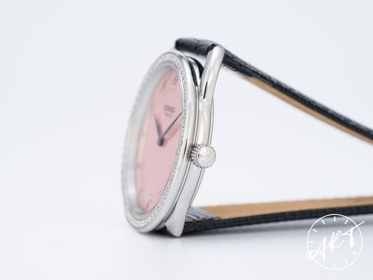 Hermes Arceau Factory Diamond Bezel Pink MOP Dial SS Quartz Watch AR5.730 w/ B&P