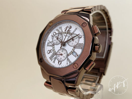 Savina Rhine Stone Chronograph Mother of Pearl Dial SS Quartz Watch w/ B&P