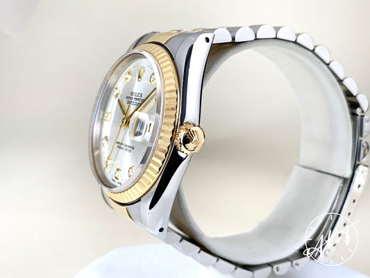1991 Rolex Oyster Perpetual DateJust Silver Diamond Dial 18K Gold & SS Watch 16233 w/Box