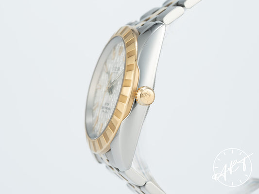 Tudor Classic Date Silver Linen Dial Two-Tone 18K Gold & SS Auto Watch 21013 BP