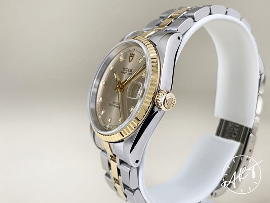Tudor Prince Date Gold Bezel Champagne Diamond Dial 18K Gold & SS Watch 72033
