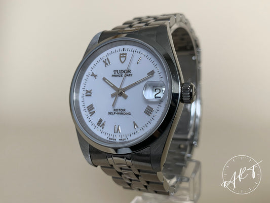 1990s Tudor Prince Date White Roman Dial Stainless Steel Auto Watch 72000 w/ B&P