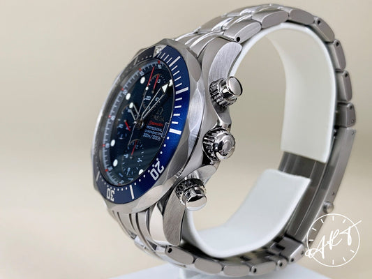 Omega Seamaster 300 Chronograph Blue Dial SS Auto Diver Watch 2225.80.00 w/ B&P