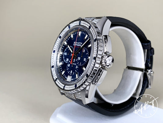Zenith El Primero Flyback Chrono FACTORY DIAMOND Blue Dial Stratos Watch w/Box