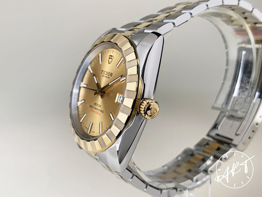 Tudor Classic Date Gold Dial 18K Gold & Stainless Steel Auto Watch 21013 w/ B&P