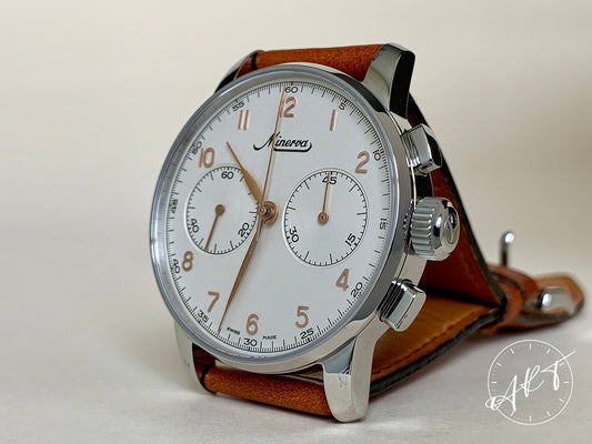 Minerva Heritage Chronograph Silver Dial SS Manual Ltd Ed Watch w/ B&P
