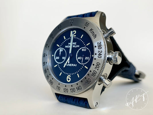 Panerai Pre Vendom Mare Nostrum Chrono Blue Dial SS Manual Watch 5218-301A w/ BP