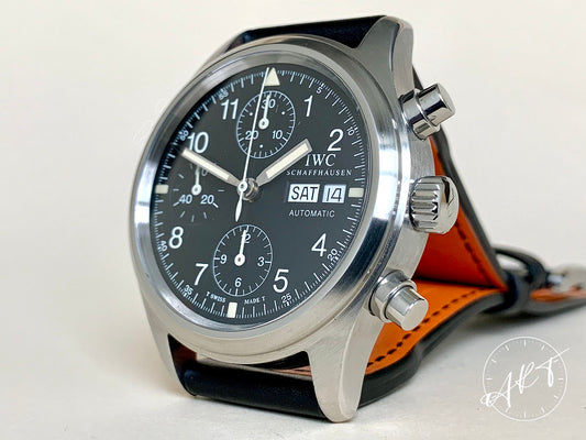 IWC Flieger Day-Date Chrono Black Dial Cream Patina SS Auto Pilot Watch IW3706