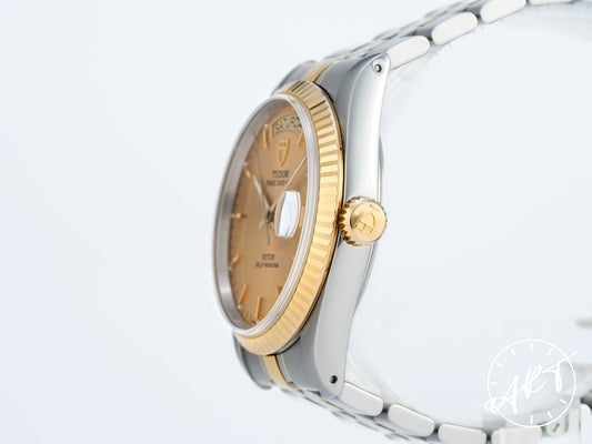NEW Tudor Prince Date Gold Dial Two-Tone 18K Gold & SS Auto Watch 74033 w/ B&P