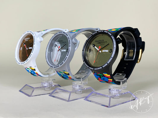 NEW Swatch x Bape Multicolor Dial Quartz 2020 Tokyo Ltd Ed Watch in FULL SET
