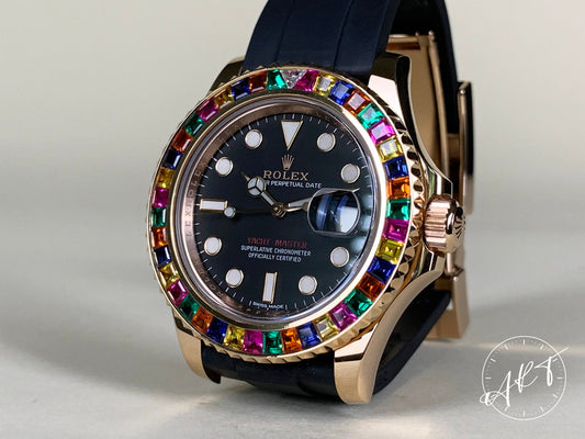 Rolex Yacht-Master Black Dial “Tutti Frutti” 18K RG Auto Watch 116655 w/ B&P