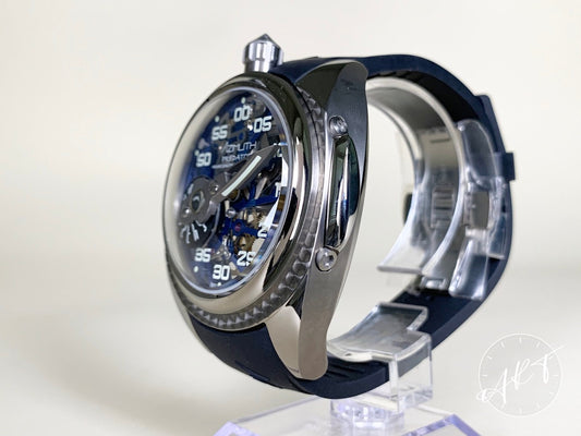 NEW Azimuth Predator 2.0 Spaceship Blue Dial Titanium Oval Manual Watch w/ B&P