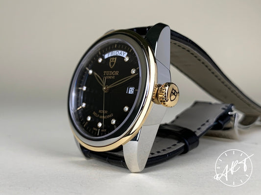 NEW Tudor Glamour Day-Date Black Diamond Dial 18K Gold & SS Auto Watch 56003 BP