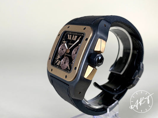 Cartier Santos 100 XL Chrono Black Dial 18K RG & Titanium Auto Watch 3104 w/ B&P