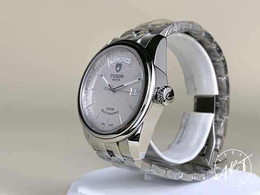 NEW Tudor Glamour Day-Date Silver Jacquard Dial SS Auto Watch 56000-0003 w/ B&P