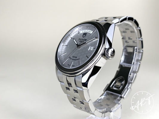 NEW Tudor Glamour Day-Date Silver Jacquard Dial SS Auto Watch 56000-0003 w/ B&P