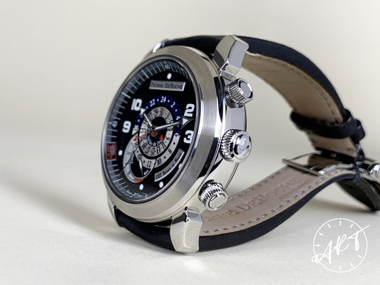 NEW Pierre DeRoche Grandcliff GMT Black & Silver Dial SS Auto Watch w/ B&P