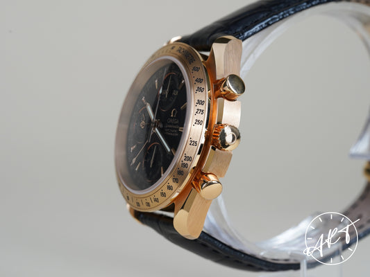 Omega Speedmaster Triple Date Chrono Black Dial 18K RG Watch BP