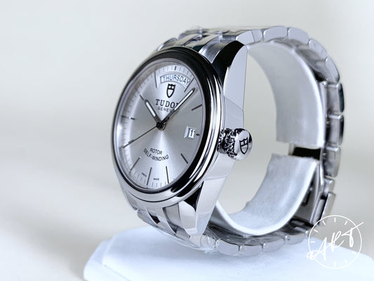 Tudor Glamour Day-Date Silver Dial Stainless Steel Automatic Watch 56000 w/ Box