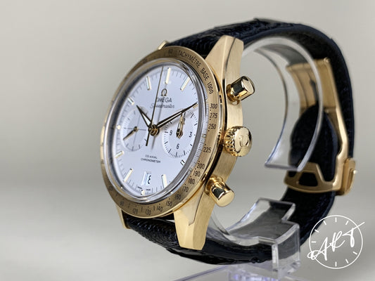 Omega Speedmaster '57 Cal 9301 Chrono Silver Dial Gold 18K Gold Auto Watch w/ BP