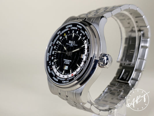 BALL Trainmaster Day & Date Worldtime Black Dial SS Auto Watch GM2020D
