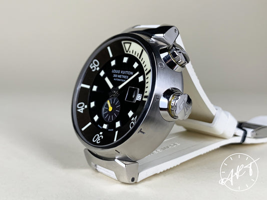 Louis Vuitton Tambour Ivory & Brown Bezel Black Dial SS Diver Watch Q1031 BP