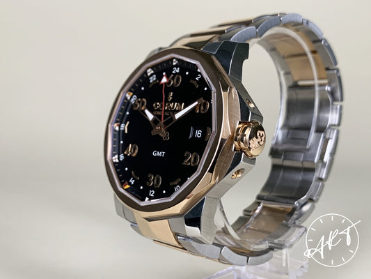 Corum Admiral's Cup GMT RG Bezel Black Dial 18K RG & SS Watch BP