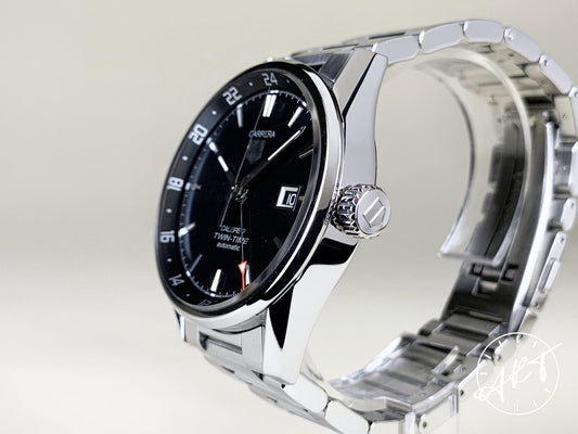 Tag Heuer Carrera Cal 7 Twin Time Black Dial SS Auto Watch WAR2010 w/ B&P
