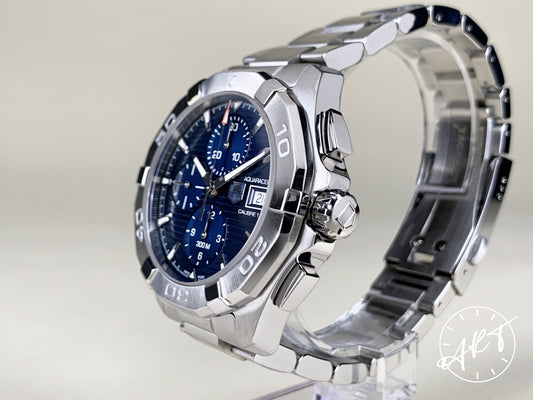Tag Heuer Aquaracer Cal 16 Chrono Blue Dial SS Auto Diver Watch CAY2112 w/ B&P