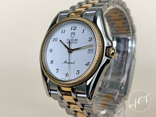 1991 Tudor Monarch White Dial Two-Tone Gold & SS Quartz Watch 15733 w/ Paper