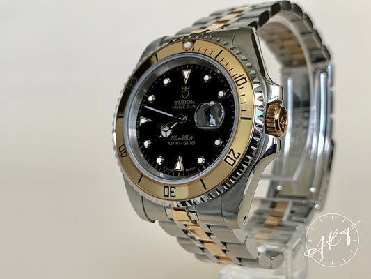 1998 Tudor Prince Date Mini-Sub Black Dial Gold & SS Diver Watch 73193 BP