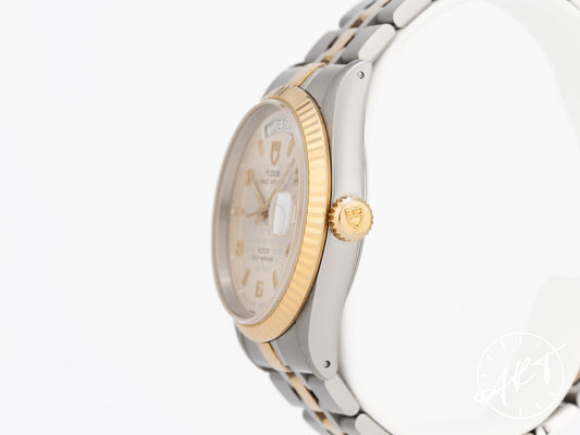 Tudor Prince Day-Date Silver Arabic Dial 18K Gold & SS SE Watch 76213