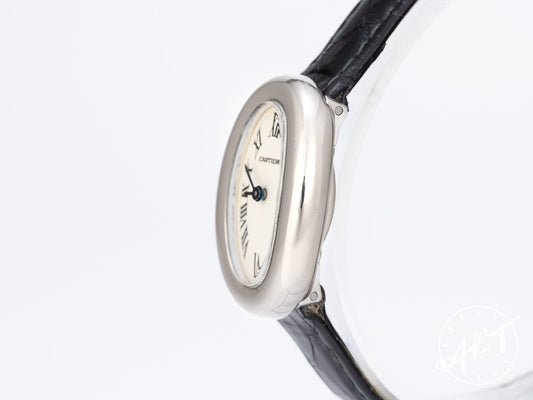 Cartier Mini Baignoire Silver Dial 18K WG Oval Quartz Ladies Watch W1518956 BP