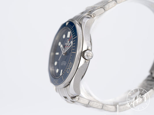 NEW Omega Seamaster Co-Axial Chronometer Blue Dial SS Auto Diver Watch w/ B&P