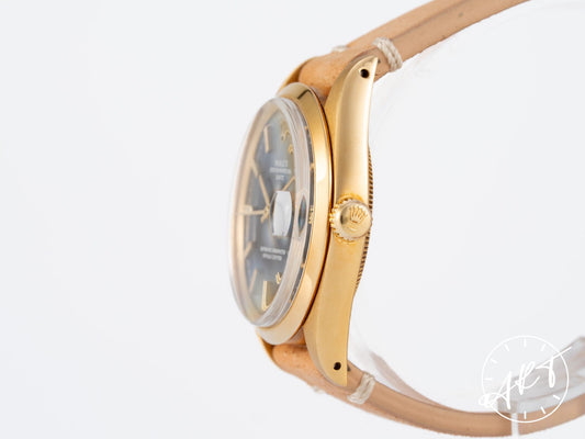 Vintage 1975 Rolex Oyster Perpetual Date Gray Dial 18K Gold Watch 1500 w/ Box