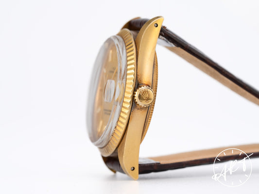 Vintage 1978 Rolex Oyster Perpetual Date Brown Dial 18K Gold Auto Watch 1500 BP