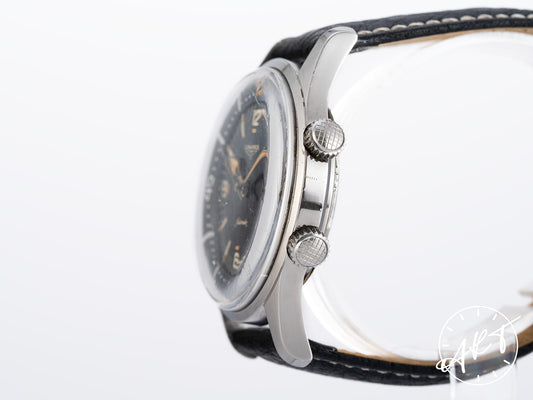 Vintage 1961 Longines Super Compressor Black Dial Cream Lume Patina SS Watch 7150-1