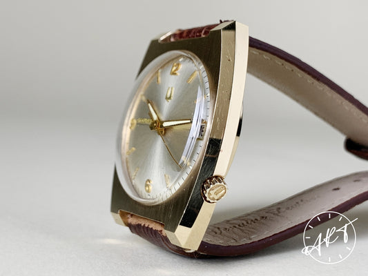 Vintage 1973 Accutron Champagne Dial Gold 10K Gold Plated Tuning Fork Watch