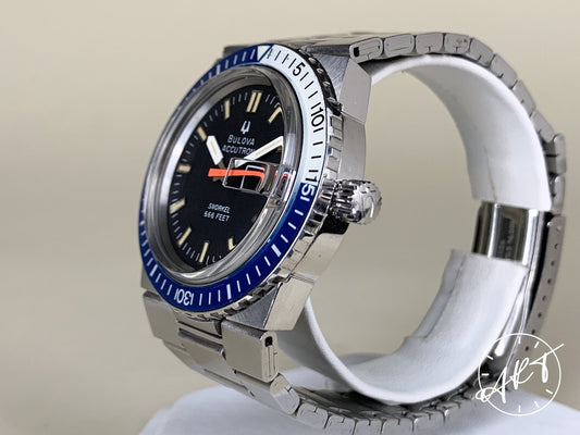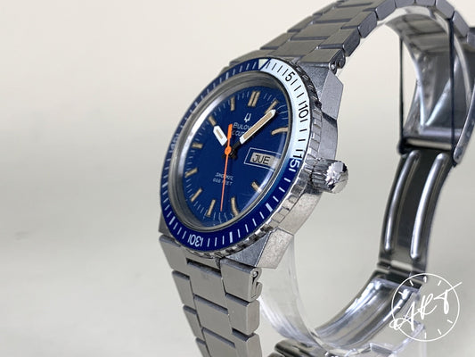 1970s Accutron Snorkel Blue/White Bezel Black Dial Tuning Fork Euro Edition Watch