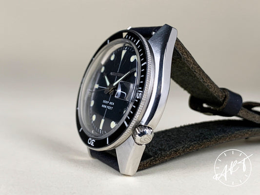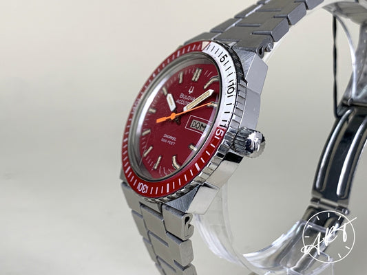Vintage 1969 Bulova Oceanographer Snorkel 666 Black & Red Bezel Black Dial Watch