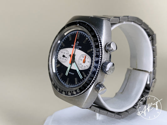Vintage 1969 Breitling Sprint Chrono Black & White Surfboard Dial Watch 2214