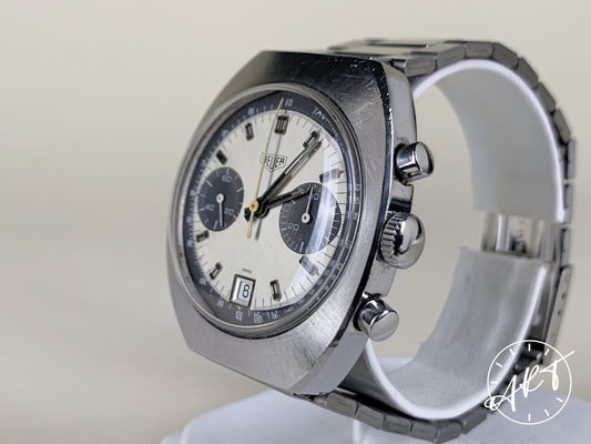 Vintage 1971 Heuer Pre-Carrera Val 7734 Chrono Panda Dial SS Pilot Watch 73373 S