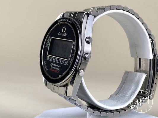 Vintage Omega Speedmaster Chronograph GMT Black Dial SS Quartz Watch 186.0004
