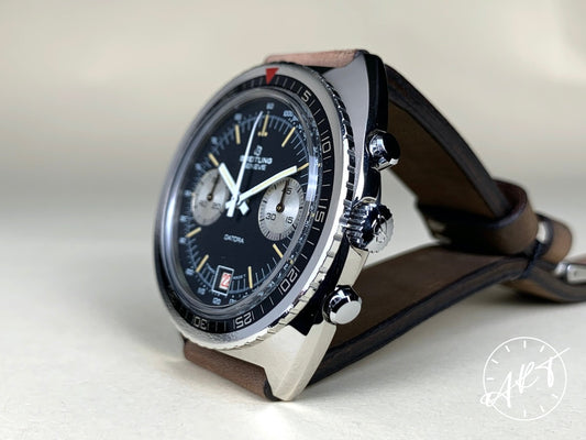 NOS Vintage 1973 Breitling Datora Val 7734 Chrono Reverse Panda Dial Watch 2034