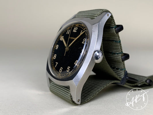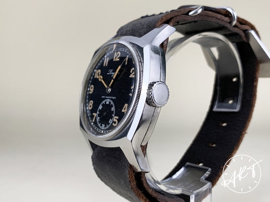 Vintage 1940s Eterna Majatek Czech Air Force Black Gilt Dial SS Military Watch