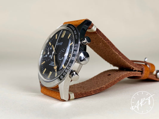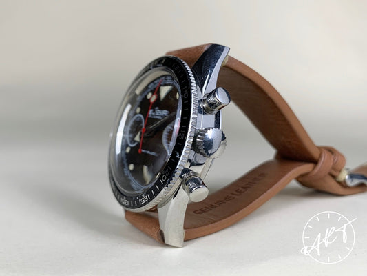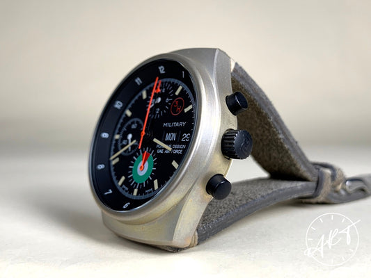 Vintage 1970s Sabina Val 7730 17 Jewels Chrono Jumbo Black Dial SS Pilot Watch