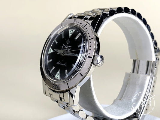 Vintage Zodiac Sea Wolf Black Dial Stainless Steel Automatic Watch in FULL SET