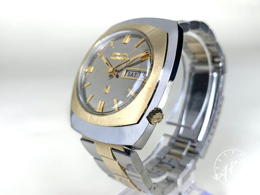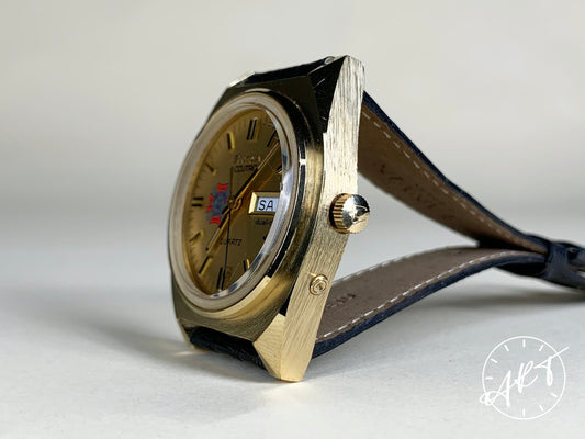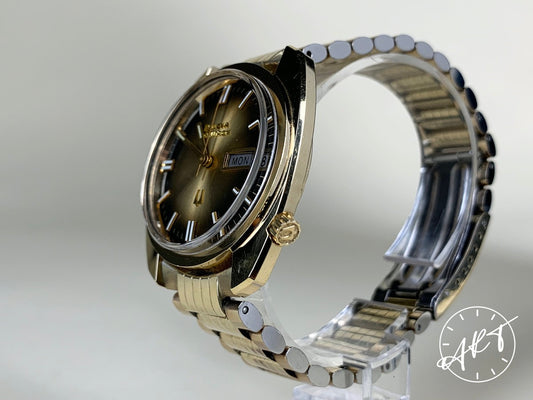 Vintage 1973 Accutron Day-Date Gold Dial Gold Plated SS Tuning Fork Watch