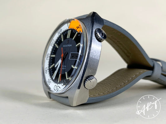 Vintage 1971 Accutron Deep Sea 666 Feet Black & Gray Dial SS Tuning Fork Watch